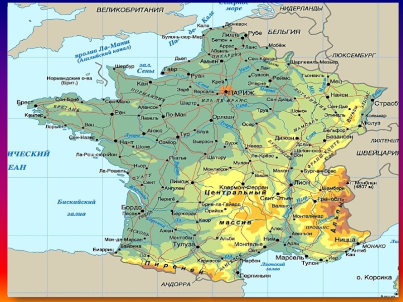Реки: Сена, Рона, Гаронна, Луара, Рейн - судоходны, соединены системой каналов, используются для орошения полей и садов в южных районах