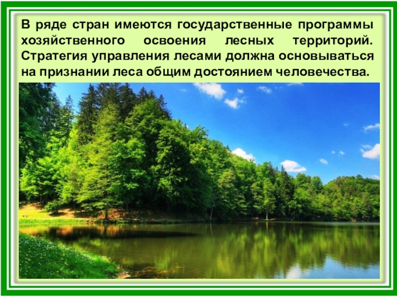 Слайд 30В ряде стран имеются государственные программы хозяйственного освоения лесных территорий. Стратегия