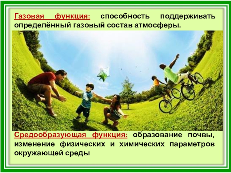 Слайд 7Газовая функция: способность поддерживать определённый газовый состав атмосферы.
