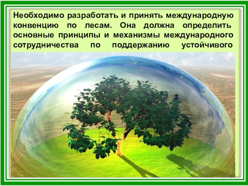 Слайд 32Необходимо разработать и принять международную конвенцию по лесам. Она должна определить