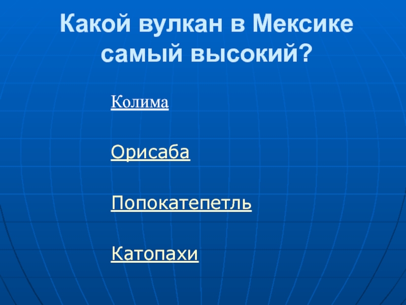 Слайд 55Какой вулкан в Мексике самый высокий?