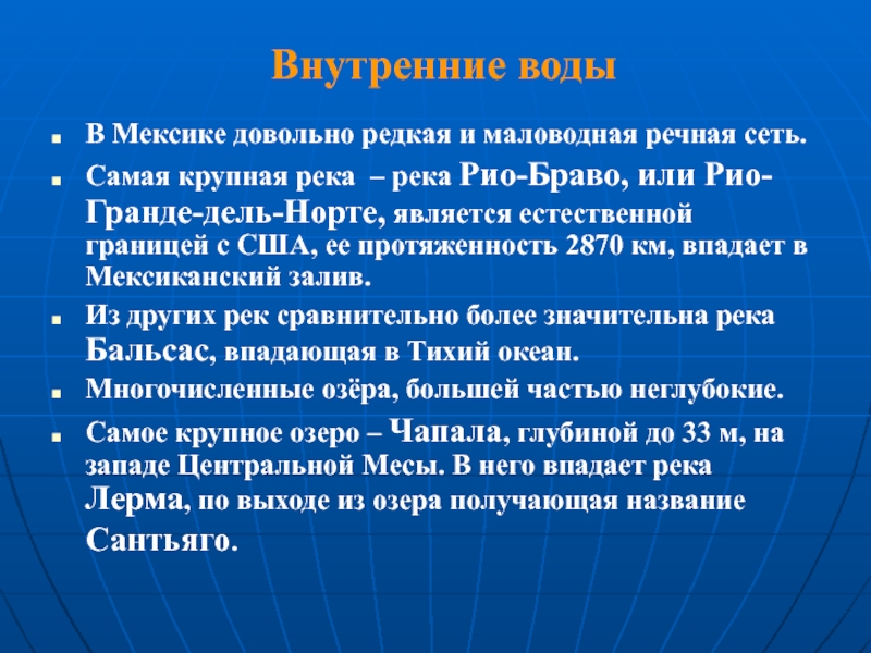 Из других рек сравнительно более значительна река Бальсас, впадающая в Тихий океан.