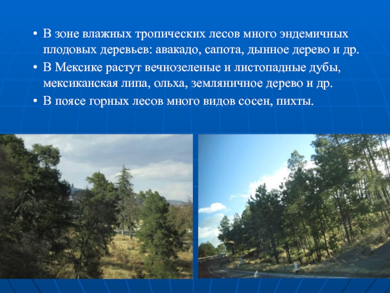 области пустынного тропического климата на Калифорнийском полуострове и влажного тропического и высокогорного климата на остальной части страны.