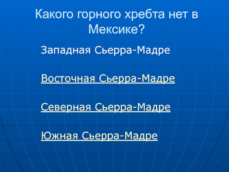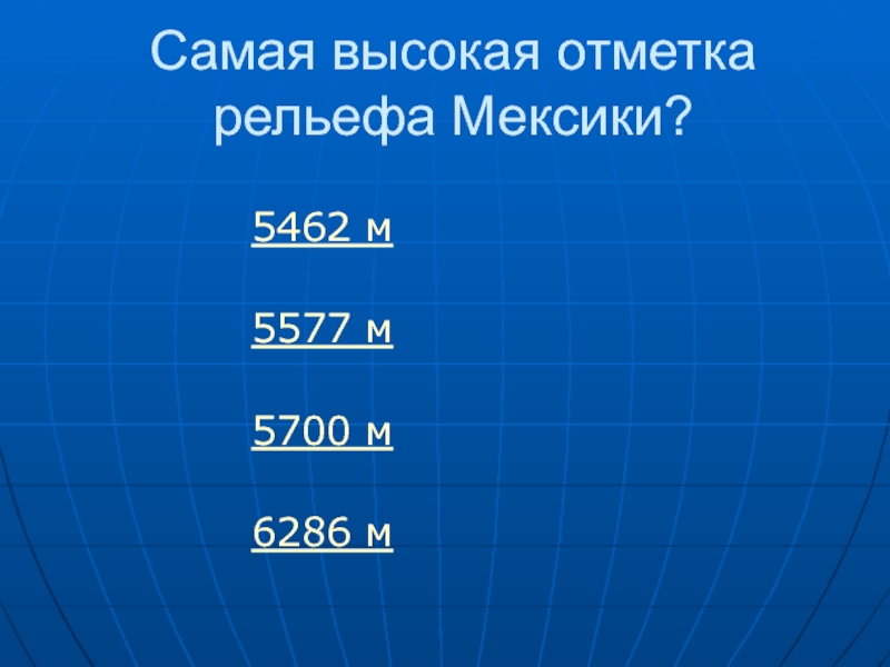 Слайд 45Самая высокая отметка рельефа Мексики?