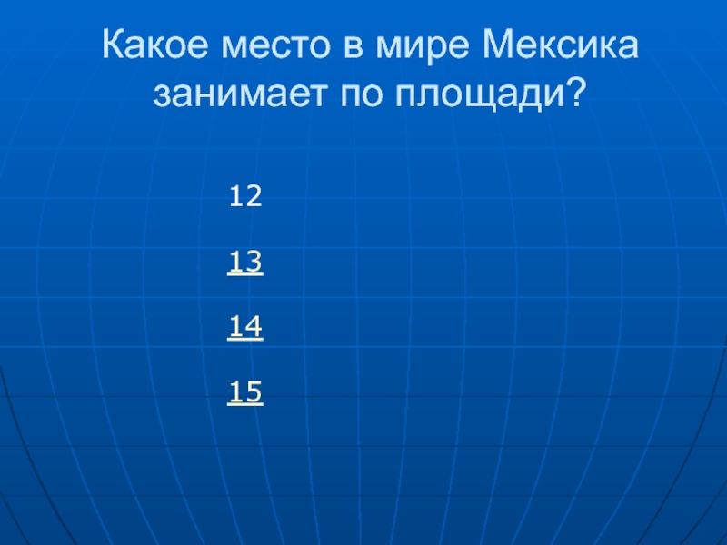 Слайд 59Какое место в мире Мексика занимает по площади?