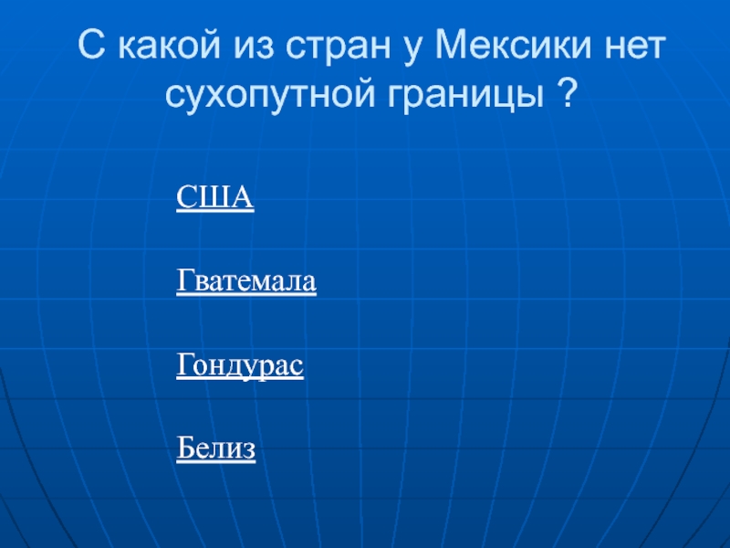 Слайд 49С какой из стран у Мексики нет сухопутной границы ?