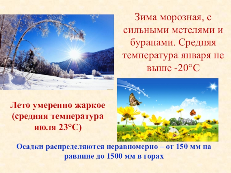 Осадки распределяются неравномерно – от 150 мм на равнине до 1500 мм в горах
