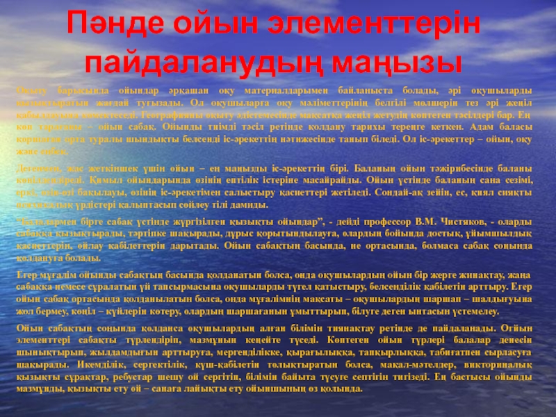 Слайд 7Пәнде ойын элементтерін пайдаланудың маңызы
