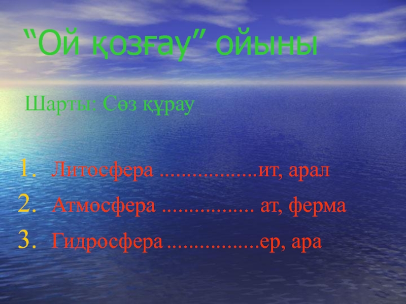 1. Жер бетінің су басып жатқан аса ірі кеңістігі........................... деп аталады.