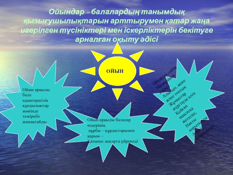 Слайд 8Ойындар – балалардың танымдық қызығушылықтарын арттырумен қатар жаңа игерілген түсініктері мен