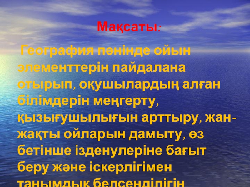 География пәнінде ойын элементтерін пайдалана отырып, оқушылардың алған білімдерін меңгерту,