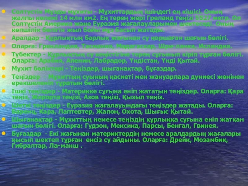 Слайд 26Тынық мұхит - Жер шарындағы ең үлкені ,жалпы көлемі 180 млн