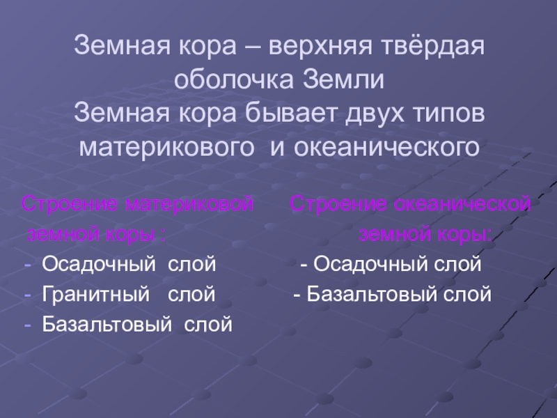 земной коры : земной коры: