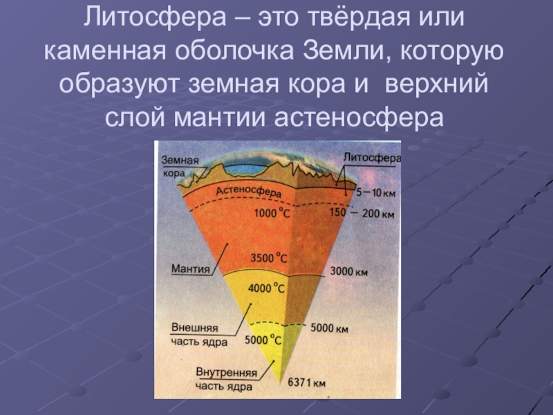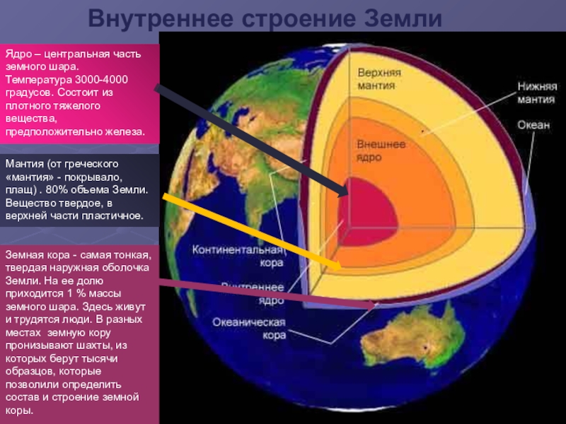 Мантия (от греческого «мантия» - покрывало, плащ) . 80% объема Земли. Вещество твердое, в верхней части пластичное.