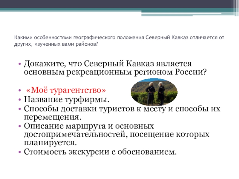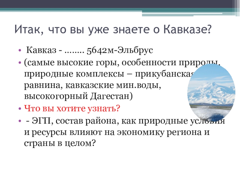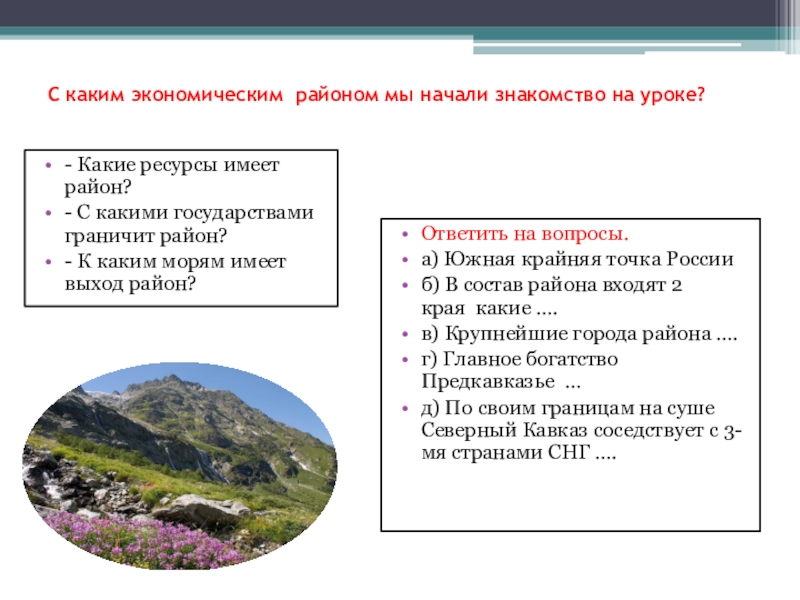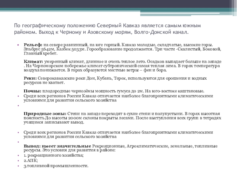 1. Северный Кавказ занимает пограничное положение между равнинами и горами.