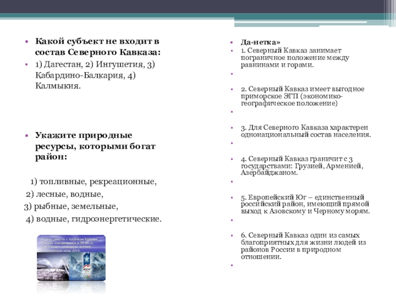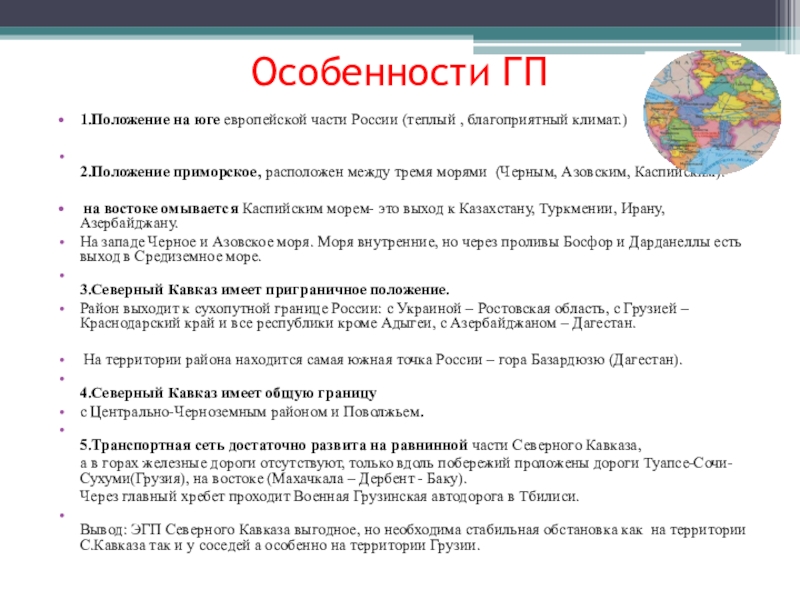 2. Северный Кавказ имеет выгодное приморское ЭГП (экономико-географическое положение)