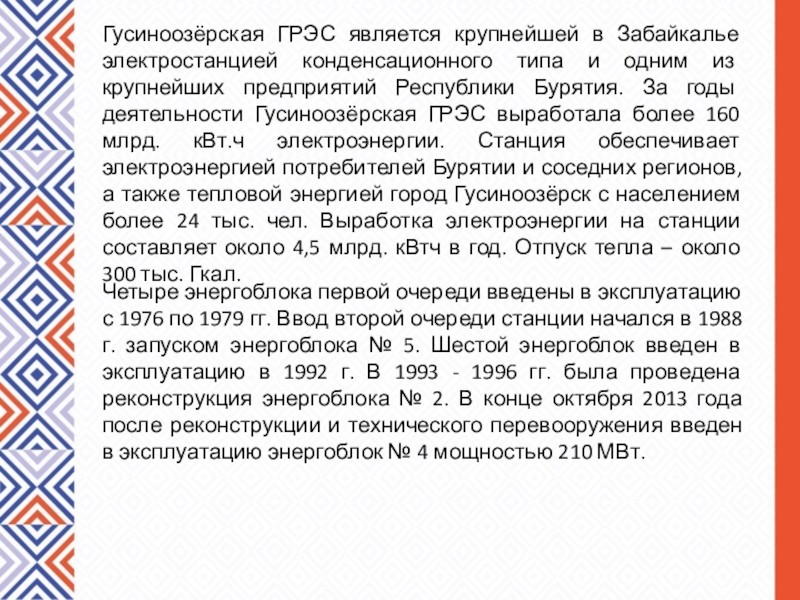 Четыре энергоблока первой очереди введены в эксплуатацию с 1976 по 1979 гг. Ввод второй очереди станции начался в 1988 г. запуском энергоблока № 5. Шестой энергоблок введен в эксплуатацию в 1992 г. В 1993 - 1996 гг. была проведена реконструкция энергоблока № 2. В конце октября 2013 года после реконструкции и технического перевооружения введен в эксплуатацию энергоблок № 4 мощностью 210 МВт.