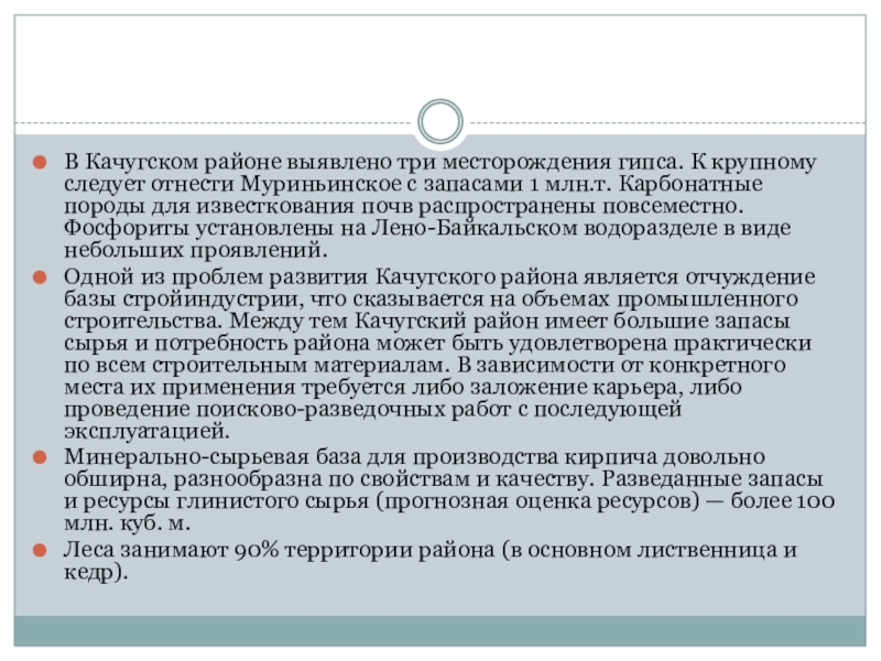 Слайд 23В Качугском районе выявлено три месторождения гипса. К крупному следует отнести Муриньинское с