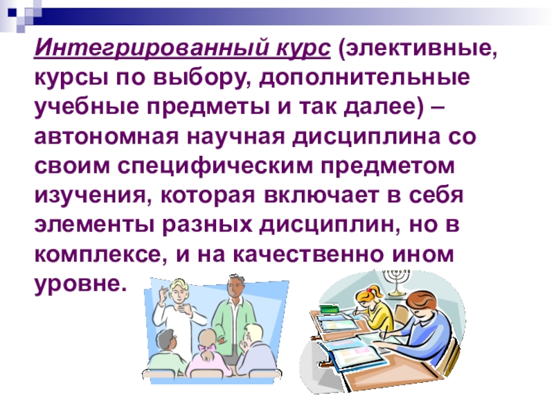 Слайд 32Интегрированный курс (элективные, курсы по выбору, дополнительные учебные предметы и так