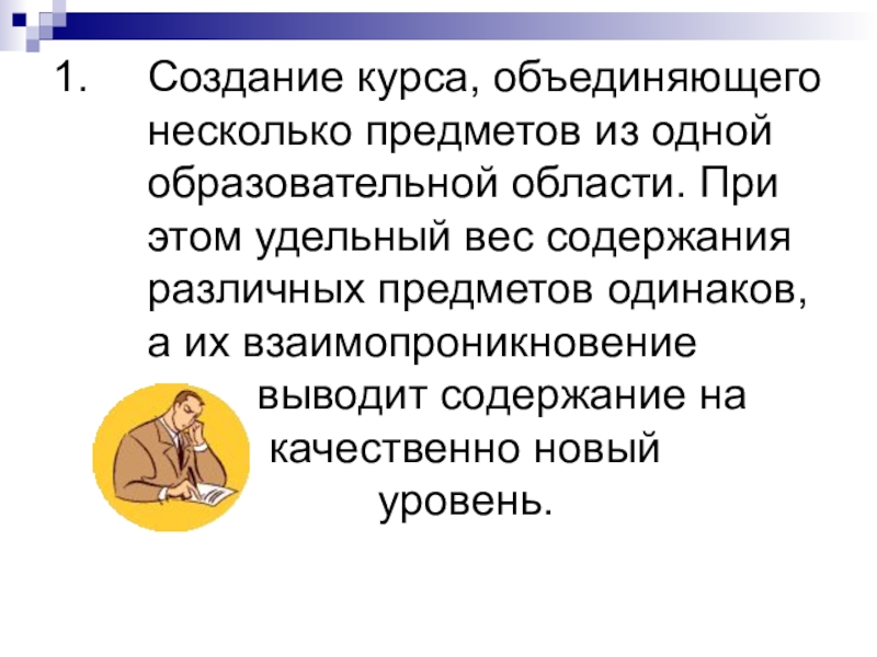 Слайд 17Создание курса, объединяющего несколько предметов из одной образовательной области. При этом
