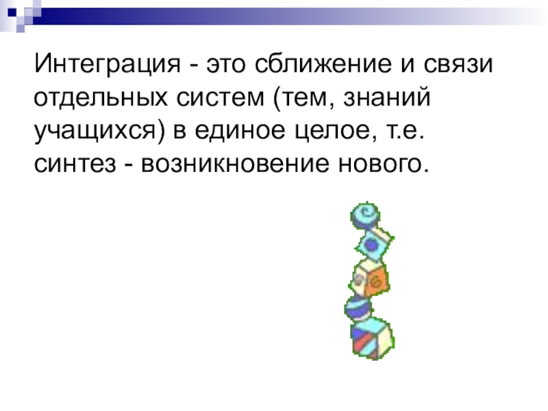 Слайд 4Интеграция - это синтез, возникновение нового. А возникновение нового - это