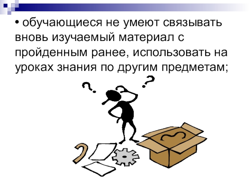 Слайд 14• обучающиеся не умеют связывать вновь изучаемый материал с пройденным ранее,