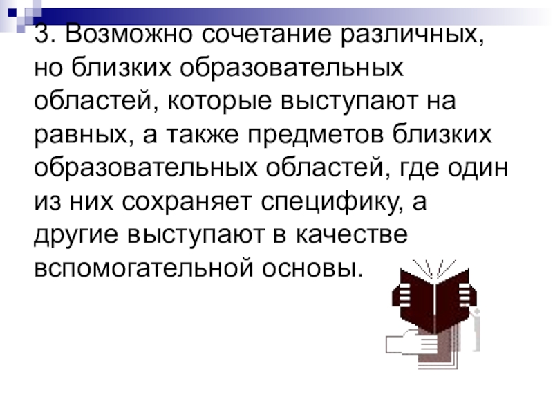 Слайд 193. Возможно сочетание различных, но близких образовательных областей, которые выступают на