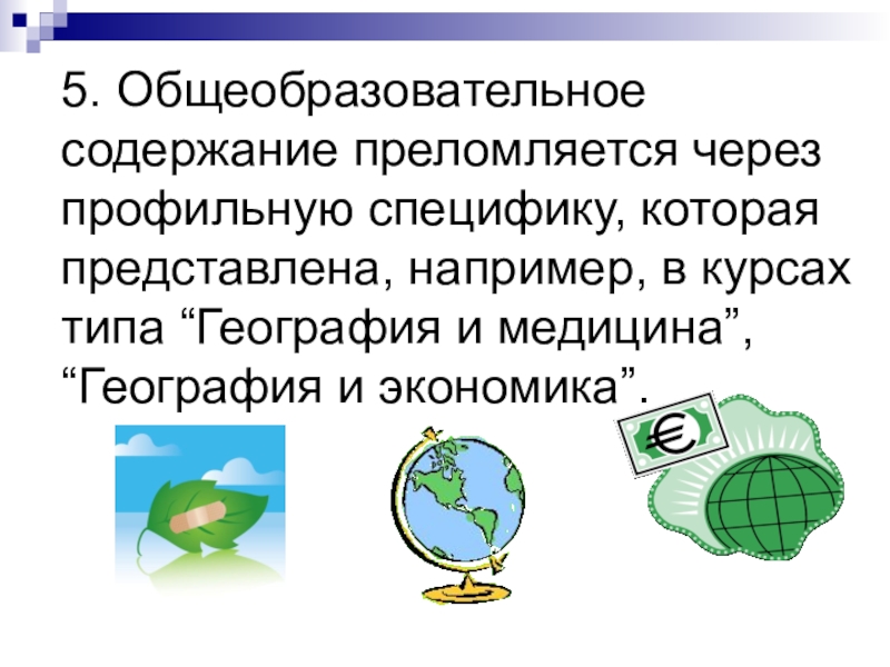 Слайд 215. Общеобразовательное содержание преломляется через профильную специфику, которая представлена, например, в