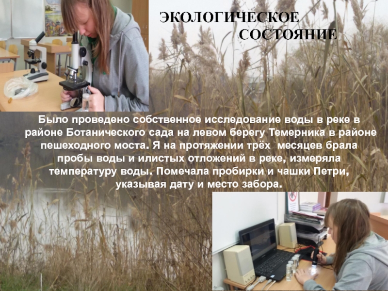 Было проведено собственное исследование воды в реке в районе Ботанического сада
