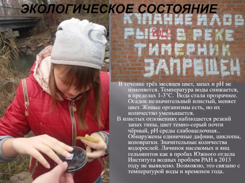 экологическим состоянием реки сегодня;