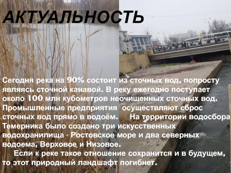 Сегодня река на 90% состоит из сточных вод, попросту являясь сточной