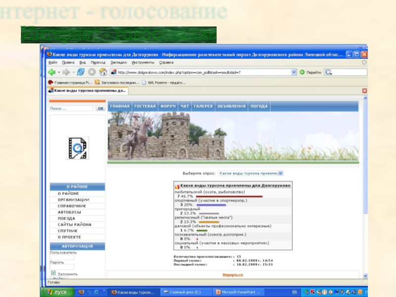 провести социологическое исследование среди жителей Долгоруковского района по вопросам развития отдельных видов туризма.
