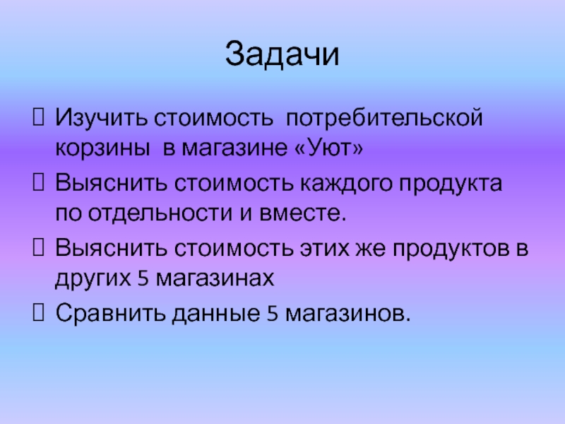 Изучить стоимость потребительской корзины в магазине «Уют»