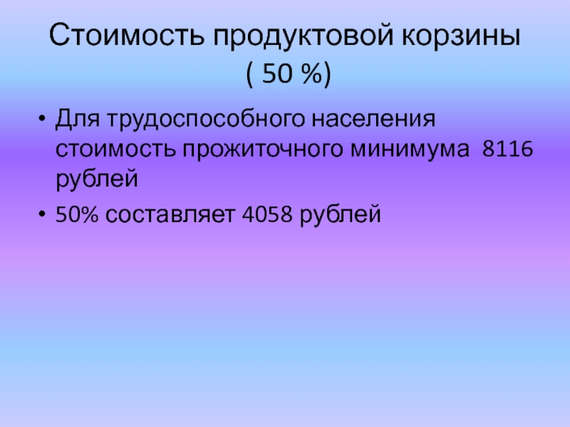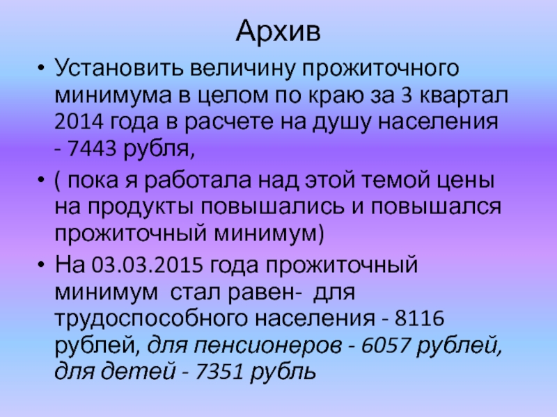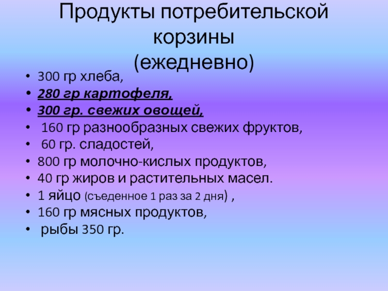 ( пока я работала над этой темой цены на продукты повышались и повышался прожиточный минимум)