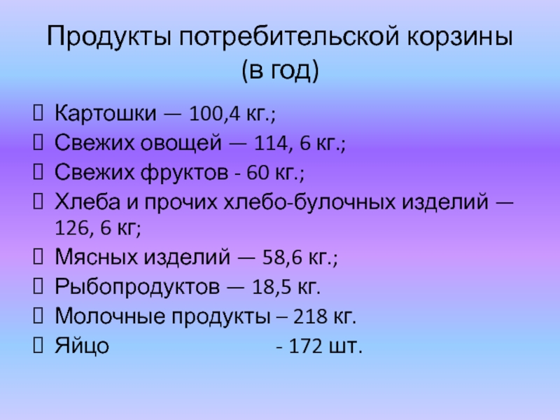Слайд 14Продукты потребительской корзины