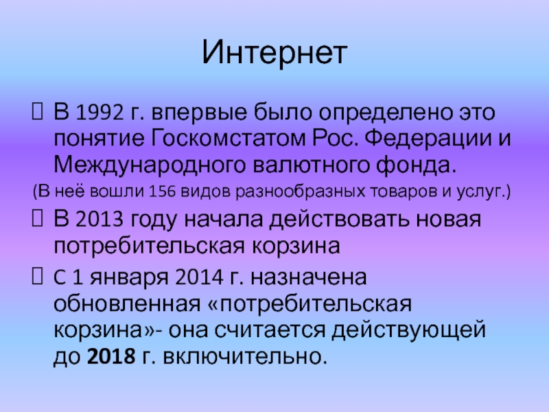 C 1 января 2014 г. назначена обновленная «потребительская корзина»- она считается действующей до 2018 г. включительно.