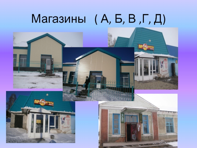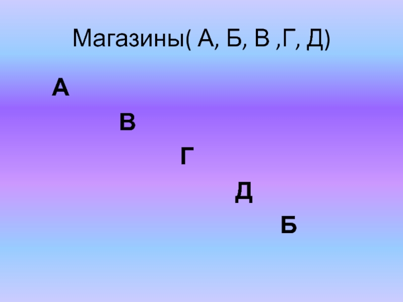 Слайд 19Магазины( А, Б, В ,Г, Д)