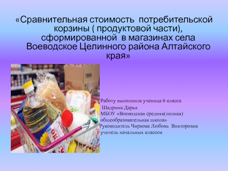 Слайд 5«Сравнительная стоимость потребительской корзины ( продуктовой части), сформированной в магазинах села