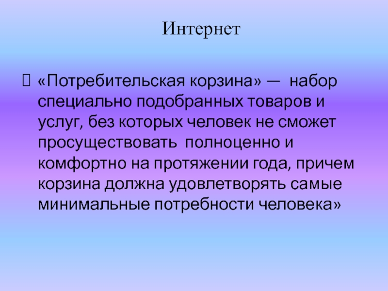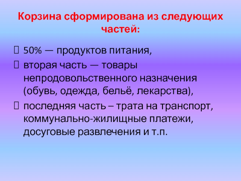 «Потребительская корзина» — набор специально подобранных товаров и услуг, без