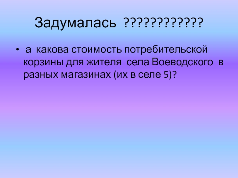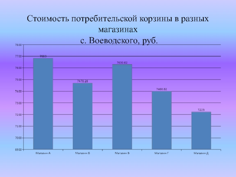 Сравнение стоимости потребительской корзины 5 магазинов села Воеводское