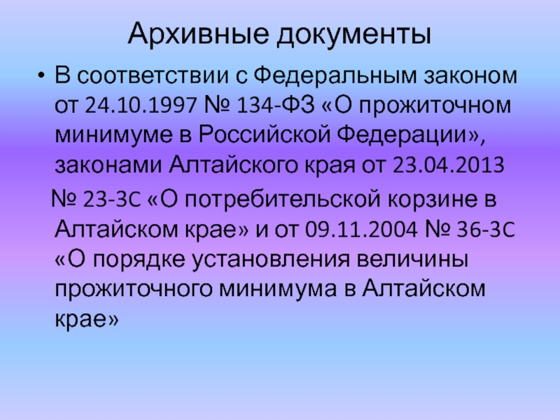 «О прожиточном минимуме в Российской Федерации», законами Алтайского края от 23.04.2013