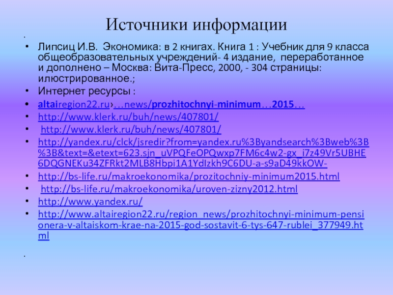 ному минимуму, что подтверждается собранной мной информацией.