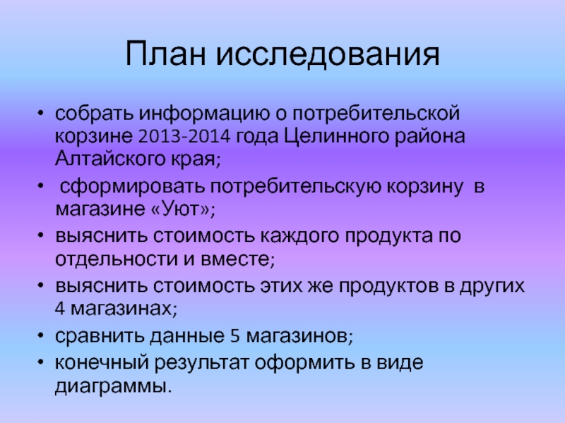 собрать информацию о потребительской корзине 2013-2014 года Целинного района