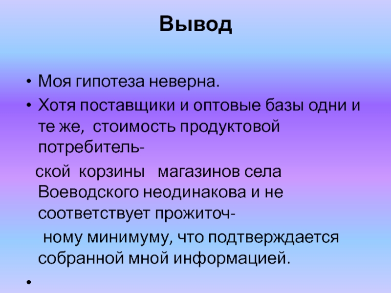 ской корзины магазинов села Воеводского неодинакова и не соответствует прожиточ-