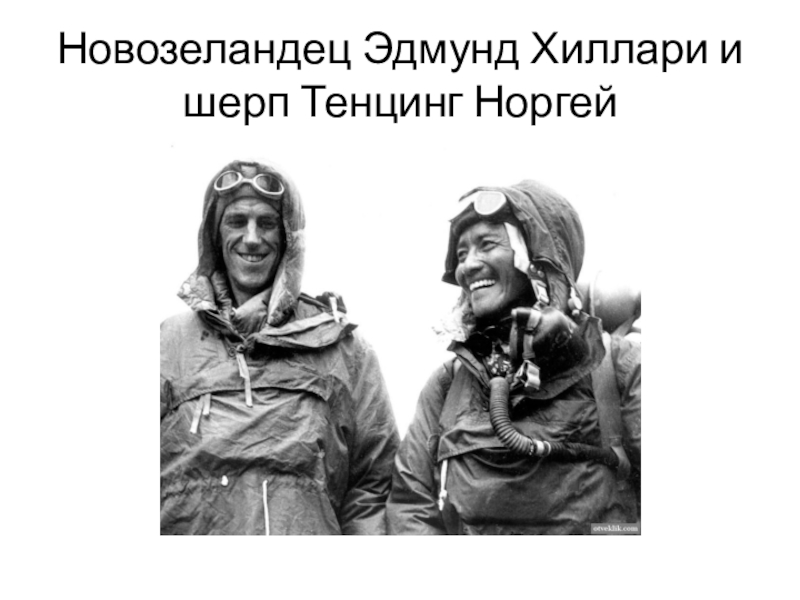 Слайд 3Новозеландец Эдмунд Хиллари и шерп Тенцинг Норгей