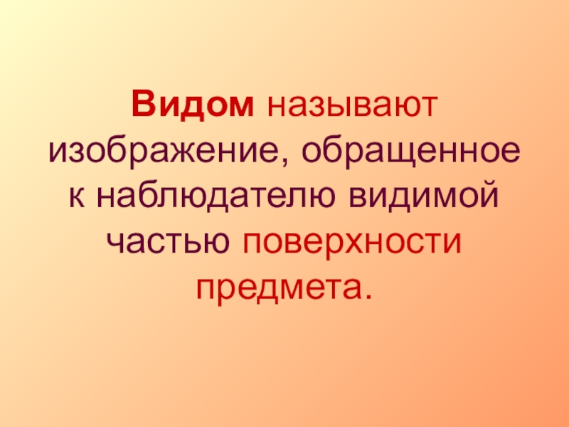 Слайд 4Видом называют изображение, обращенное к наблюдателю видимой частью поверхности предмета.