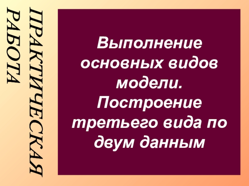 ПРАКТИЧЕСКАЯ  РАБОТАВыполнение основных видов модели.  Построение третьего вида по двум данным