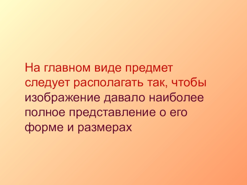 Слайд 16На главном виде предмет следует располагать так, чтобы изображение давало наиболее
