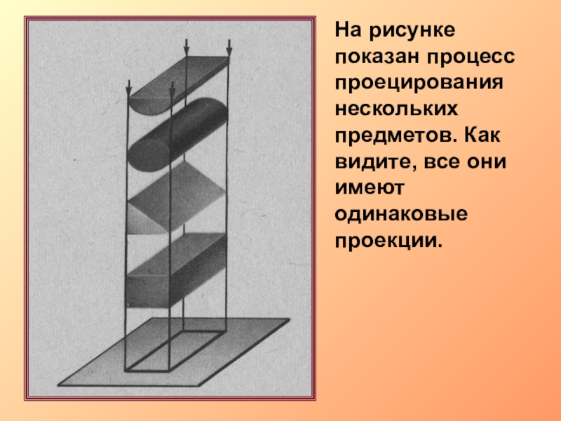 Слайд 13На рисунке показан процесс проецирования нескольких предметов. Как видите, все они