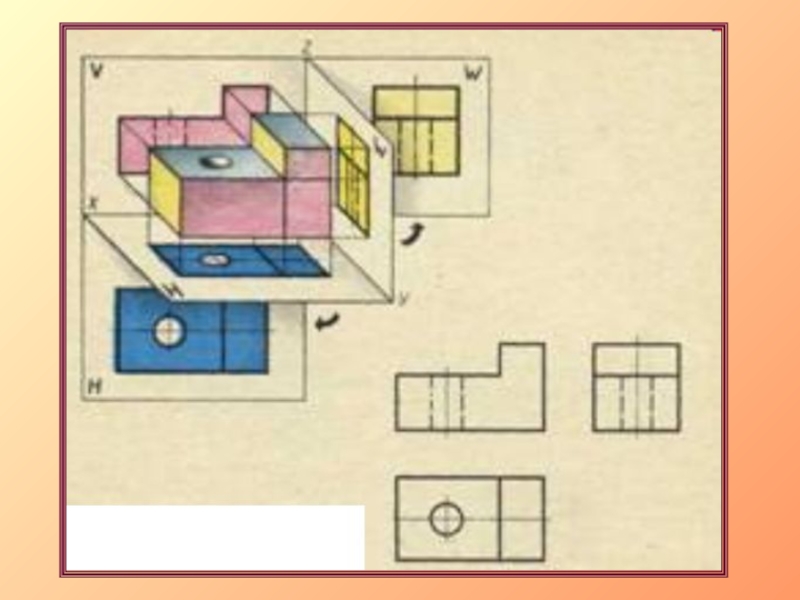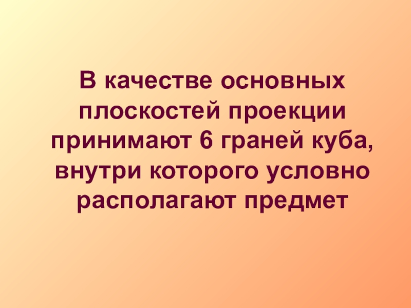 В качестве основных плоскостей проекции принимают 6 граней куба, внутри которого условно располагают предмет
